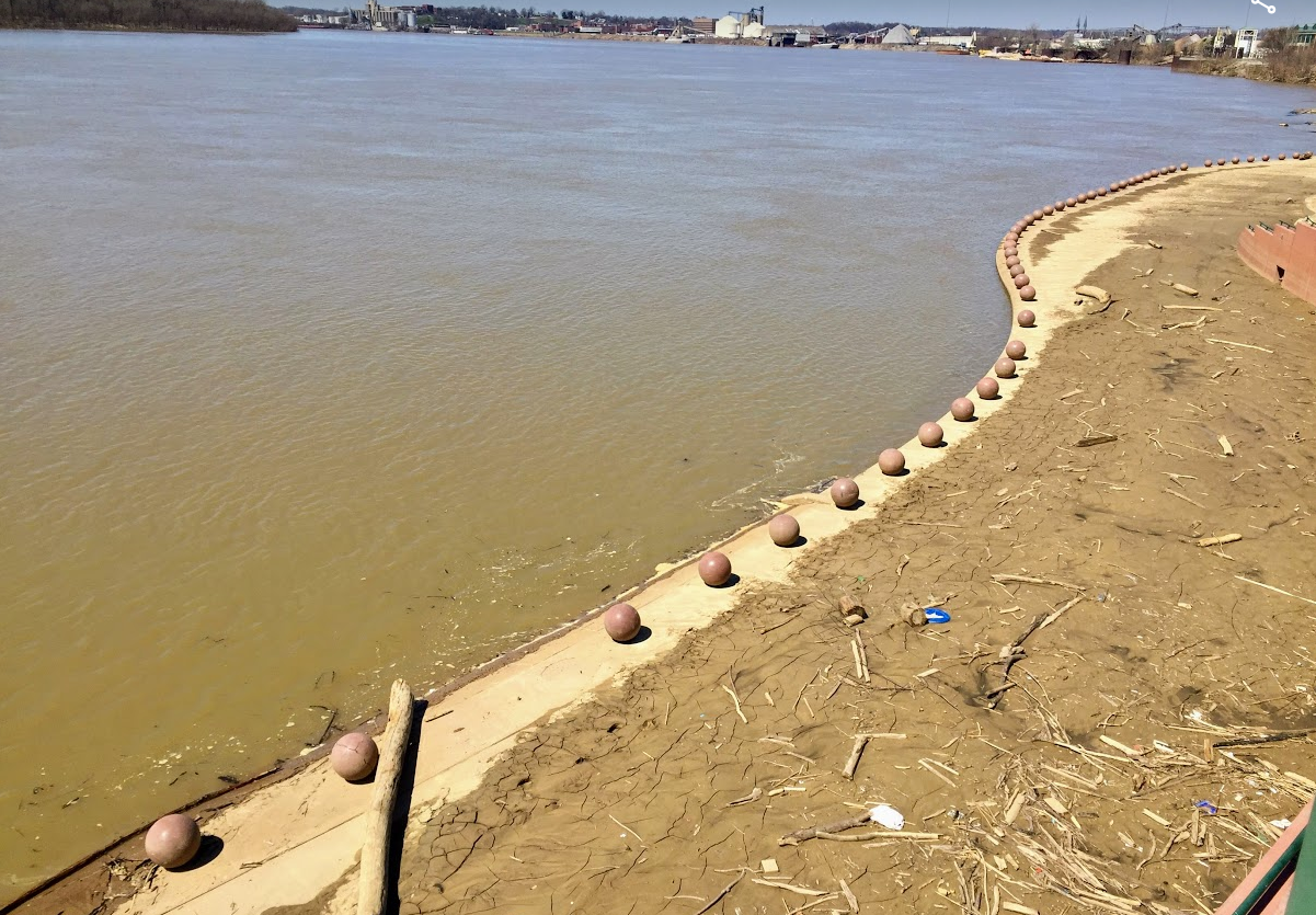 The muddy river is still very high. The riverfront is closed. It’s actually pretty nasty down there. The road is somewhere under all the water, just not yet visible.