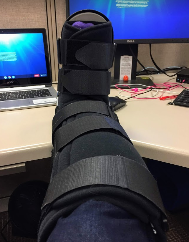 I’m in a stupid boot. It’s a nuisance. I have to walk a country mile to go potty or go to meetings at work. While the boot helps relieve some of the weight on my boot, it doesn’t alleviate the pain.