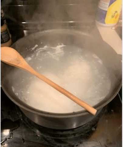 While my chicken was boiling, I added a wooden spoon on top. I do this for anything I boil. It keeps things from boiling over. Here’s your handy tip for the day.