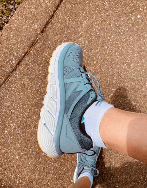 I did tons of research on what I needed for me being older, heavier, and weaker joints. Hoka One One Gaviota shoes kept popping up. I caved and bought a pair. Stability shoes aren’t the prettiest. In fact, these wide-bottomed soles remind me of the ‘Jimmy shoe’ Kramer wore in a “Seinfeld” episode, minus the spring.