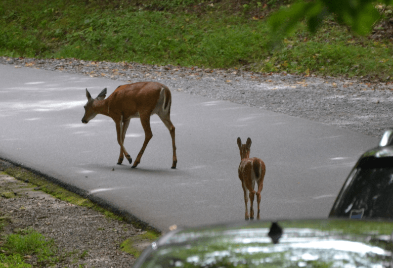 I saw a baby bear up on a hill as we made our trek to Cade’s Cove. I couldn’t get a picture because there was no pull off near. However, the highlight was the mom and baby deer that held up traffic for about 15 minutes. It was completely worth the wait to watch them move about. I love nature. I just wanted to hug them.