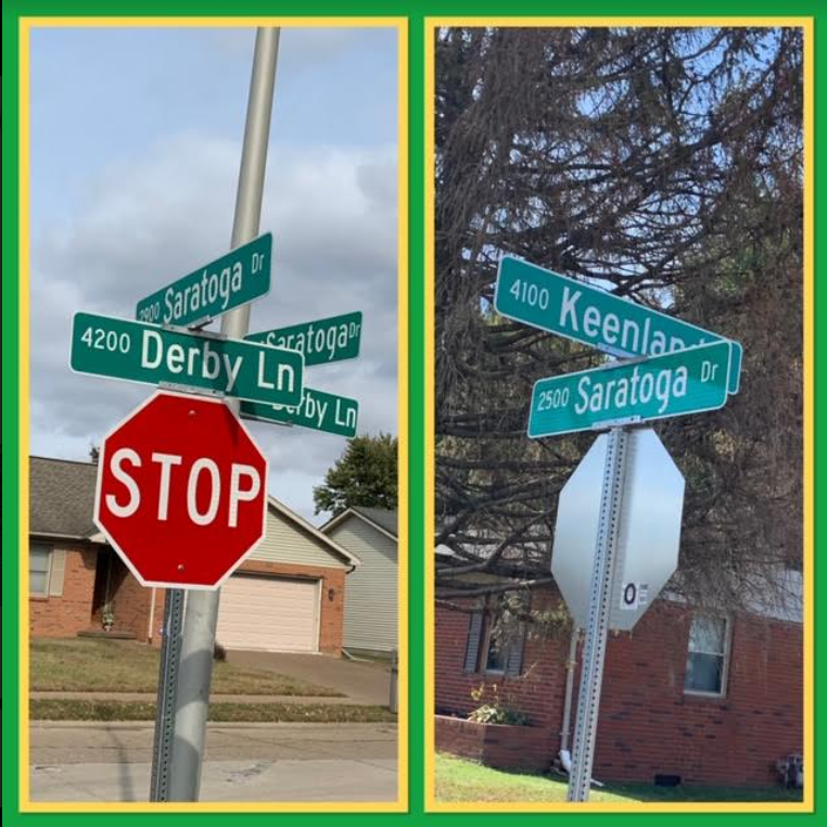I really enjoyed seeing the neighborhood at a much slower pace. We went down roads I have never seen before, and didn’t even know they were tucked away. The original builder must have been a horse racing fan with the street names I came across. (Except Keeneland Street sign is missing an e…I’m sure it’s because Hoosiers must have trouble spelling Kentucky names.)