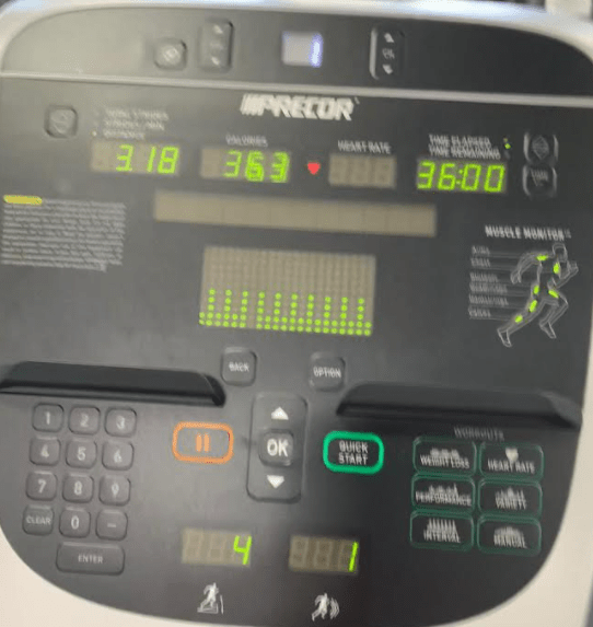 I finished at 36 minutes. I was proud of myself for doing more than 30 minutes, but also for the fact I had no hip pain. I really like this elliptical. If the distance is correct, I’m excited I did a 5K distance. This makes me so happy, along with a happy hip!