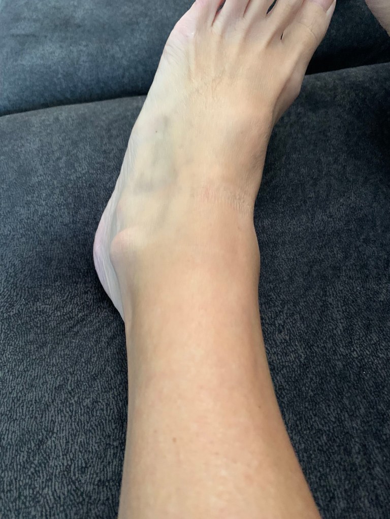I put on a boot to reduce the weight on my ankle for two weeks and then moved to an ankle brace for two weeks. I was still getting some swelling in my ankle, but not too bad. It was the rotation pain I was struggling with the most.