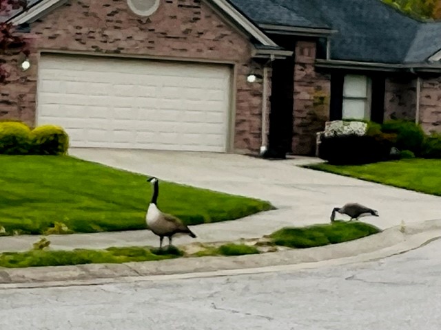 On one of my turns down a street, I saw a new goose family. It was so adorable watching Mom and Pop Geese with their gander following around them. Just made me smile..and stop for a picture. (A little fuzzy..apologies)